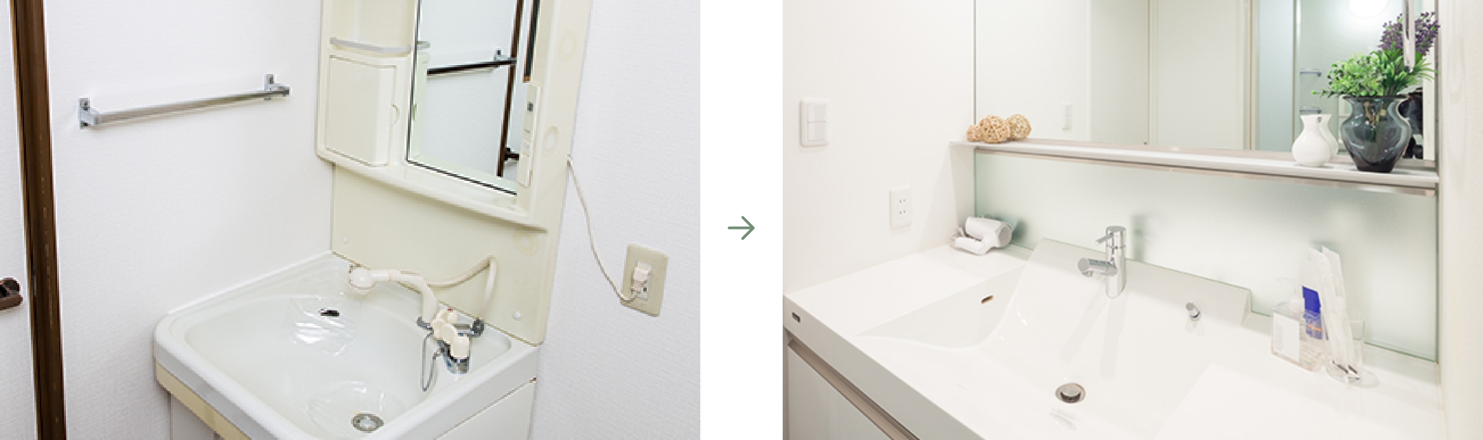 蛇口部分の水漏れ、ボウル(水を貯める部分)に数か所ヒビがあり、修理のご依頼をいただきました。また現場確認時にお客様から「鏡が小さいので、今よりも使い勝手を良くしたい」というご要望があり、リフォームのご提案をさせていただき、施工いたしました。